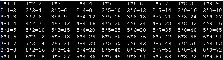 再回到第一層迴圈執行i = 2 , 下一層j = 2的部份,直到最後做到9*9,結束迴圈