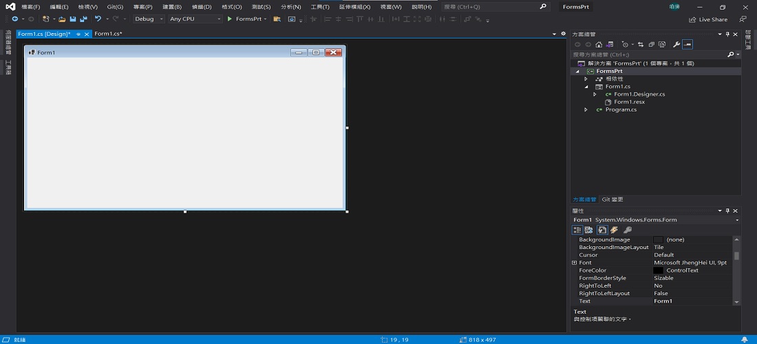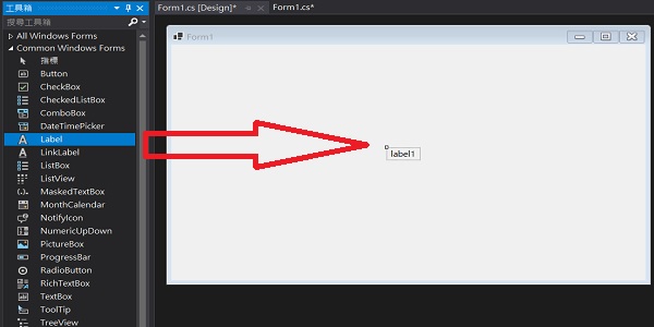 首先先從工具箱中拉出一個Label,隨意放置在Form1表單內的任何位置
