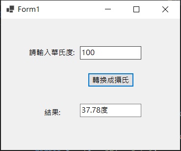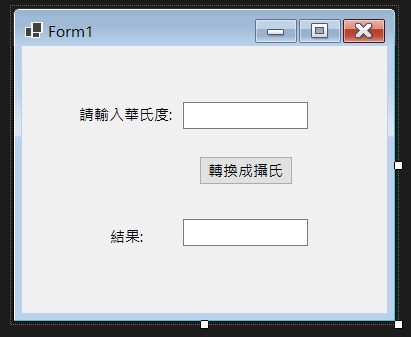 介面設計:2個Label、2個textBox、1個Button。接著對Button雙擊左鍵,進入程式碼頁面