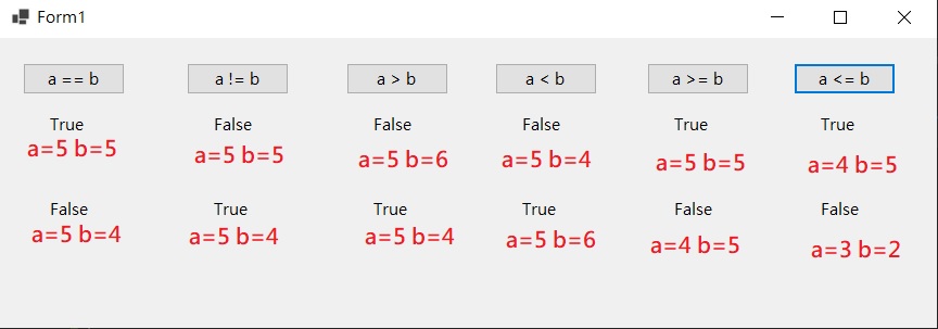 | & | 且AND | a & b | 如果a和b的值皆為True,則結果顯示True 如果不是皆為True,則結果顯示False |
